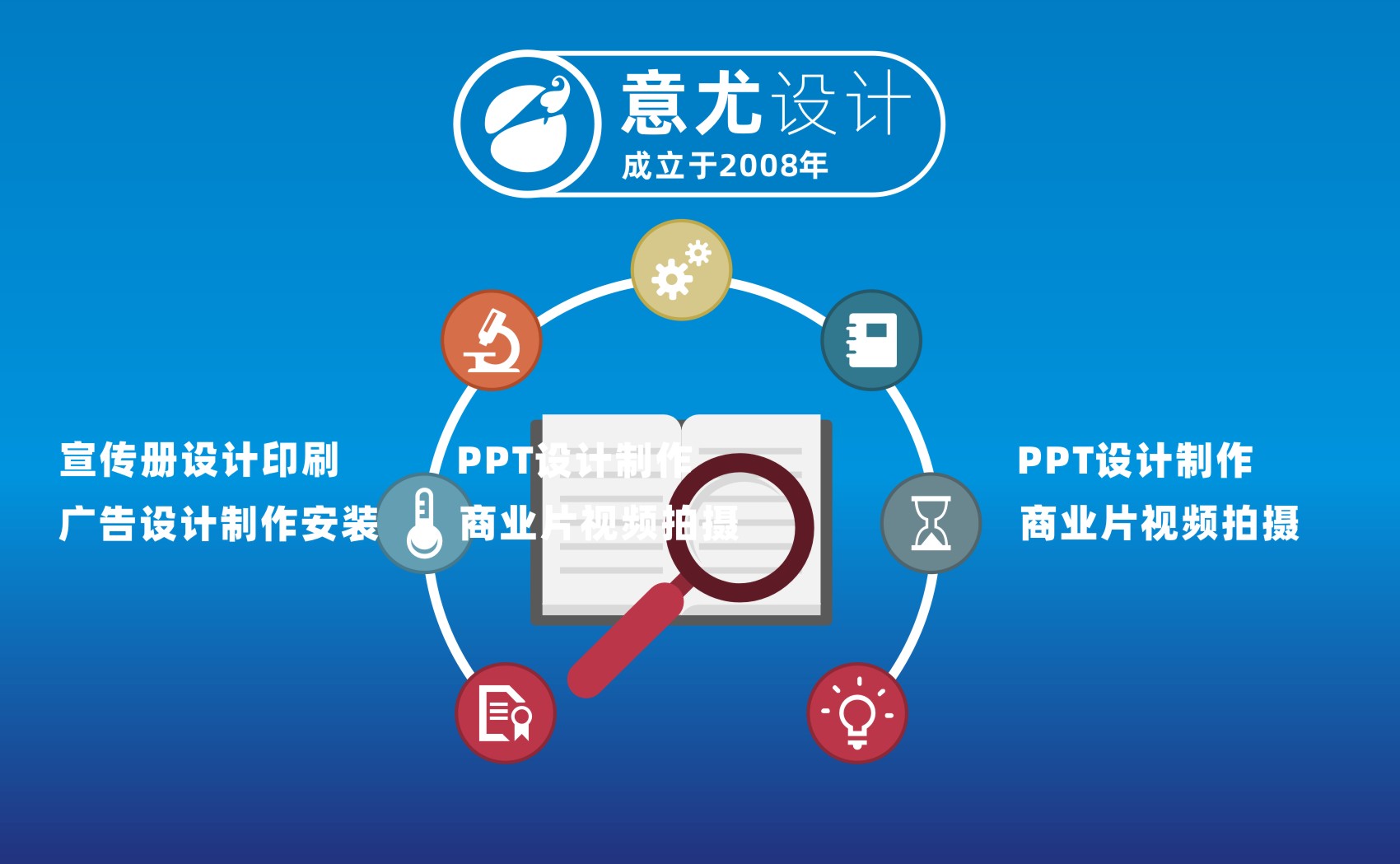 蘇州意尤文化傳播有限公司是一家有著多年廣告設計經驗的蘇州知名廣告企業 主要業務有蘇州PPT設計、蘇州產品PPT設計、蘇州企業PPT設計、蘇州會議PPT設計、蘇州項目PPT設計、企業VI設計、設計印刷宣傳冊/樣本/單頁/名片等 自2007年成立以來,蘇州意尤廣告公司與蘇州及蘇州各市的幾百家中外企業進行了廣告設計合作,經過多年發展公司已形成了以企業PPT設計、企業VI設計,廣告設計,廣告印刷,樣本設計,宣傳冊設計,名片印刷,菜譜制作,單頁,宣傳單等一批特長業務,相信在各位新老客戶的關心下,本公司會得到更大的發展,同時為客戶的發展宣傳保駕護航。